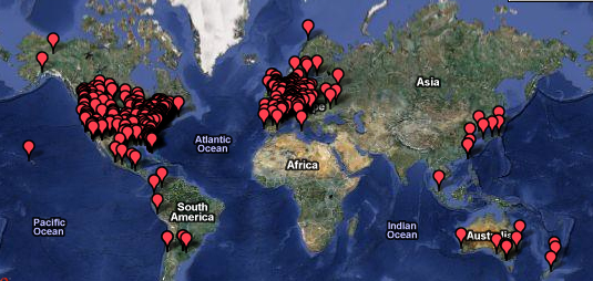 Philadelphie accueillie les premiers championnats mondiaux en 2009, Berlin les deuxièmes en 2010, et Seattle pour cette année 2011. L’Amérique, l’Australie, l’Asie et l’Europe s’organisent avec l’aide d’internet et le fameux site leagueofbikepolo.com qui regroupe actuellement des joueurs de 40 pays différents, membres de 350 clubs ou associations.